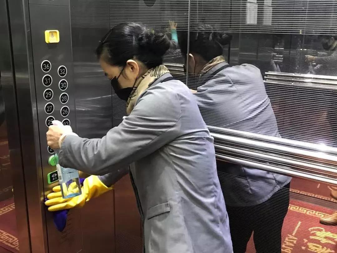 除了每日對進出人員進行體溫監測和登記,所有社區物業更指派物業專員密切關注業戶的動向,特別是對于外出返廈的業戶,更是戴口罩入戶到訪,核查情況,并且要求對方進行一定的隔離以及實時關注身體變化。同時,各物業小區持續開展全面消殺工作,電梯、入戶大堂等空間,更是每日重點消毒區域。從源頭把控,守好防控疫情第一線,最大限度降低感染風險,為全體業戶筑就堅實的疫情防控屏障,切實保障業主的健康與安全。